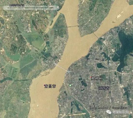 赣江沿岸的南昌市(图片:tianditu.gov.cn)然而近40年来,曾在80年代南昌地图上出现的铁线湖、朱家湖、华标湖等却陆续消失。现存的南昌市湖泊也过半萎缩,例如位于南昌孺子亭的西湖仅剩30亩左右,在小比例尺的地图上都难以看到。南昌中央商务区和行政中心的所在的红谷滩区,在20多年前,曾是赣江的江滩湿地,也是水鸟栖息之地。