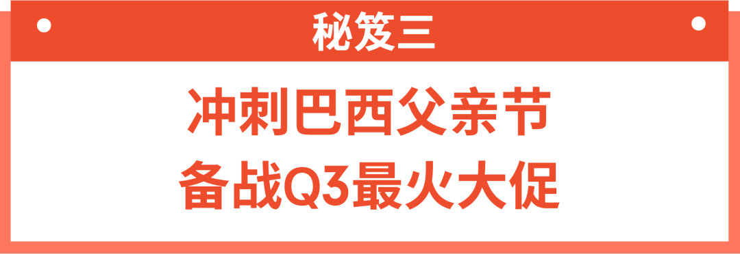 征战蓝海市场,巴西跨境卖家如何撬动新的利润增长点?第三季度最火大促8.8父亲节,你可得把握好。巴西父亲节定于8月第2个星期日。报告显示,父亲节是巴西前10大电商促销活动,其地位仅次于黑五、圣诞节和母亲节等重要节日。那么在巴西父亲节,卖家应在Shopee销售哪些商品?以下部分划重点,必考内容请精读。