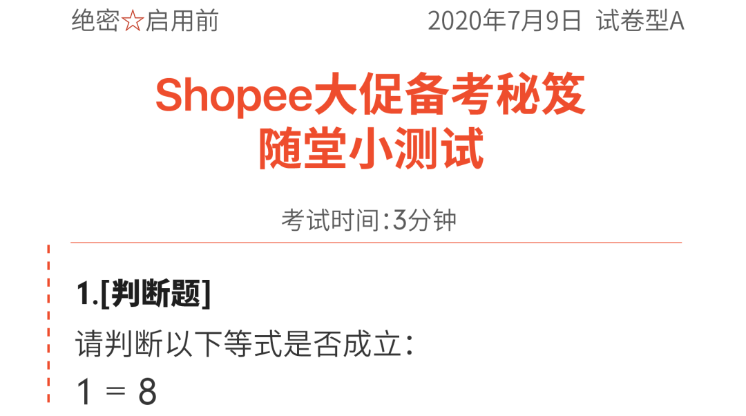 学习如此多干货,何不来模拟考试试?限时3分钟进行随堂小测试,答对3道题,2020单量就能"旺上加旺"。