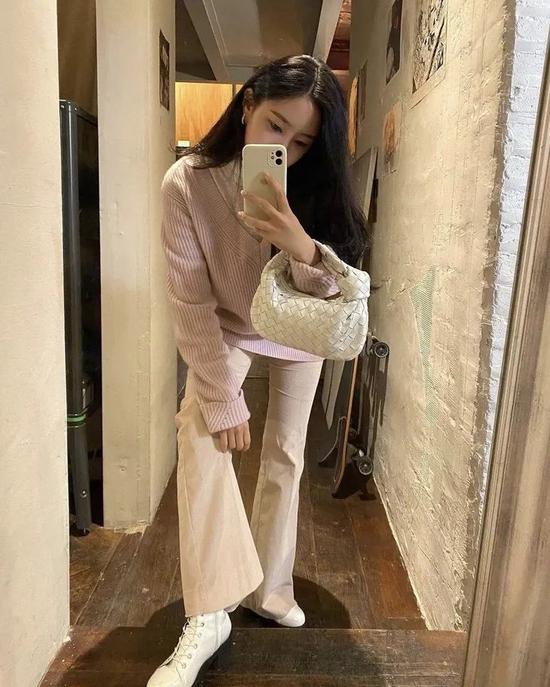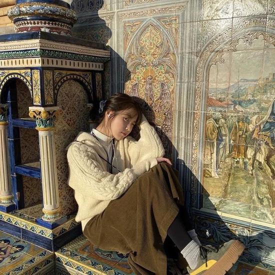 不过类似飘逸的材质上可能达不到有些女生对于保暖的需求,那么可以试试灯芯绒面料。IU就格外喜爱这种复古温暖的面料,平日私服可没少宠着。