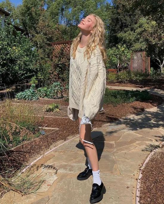 一件宽松的oversized毛衣搭配一条短款打底裤绝对是欧美风女孩的最爱,轻轻松松穿出"嗲酷风"。