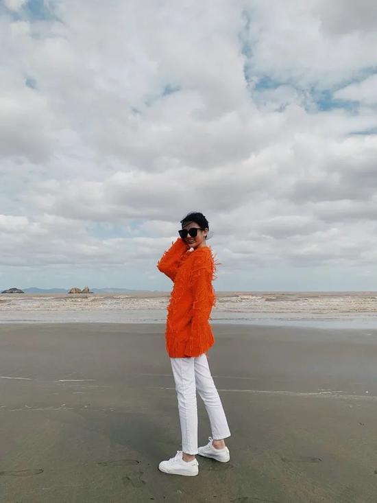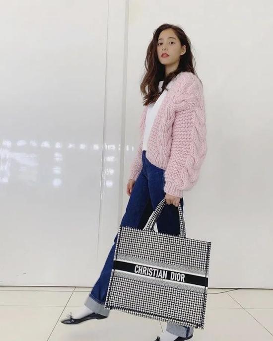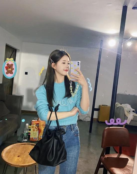 娜娜就是毛衣+长裤搭配的忠实粉丝,不论是复古阔腿裤还是清爽牛仔裤都俏皮可爱,散发出独属于少女的灵气。