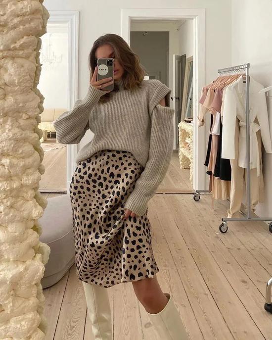 随着近两年轮廓皮质单品的大火,让时尚潮人们开辟出毛衣搭配皮裙的新穿法。再脚踩一双皮革长靴,立刻就有浓郁法式风情内味儿了。