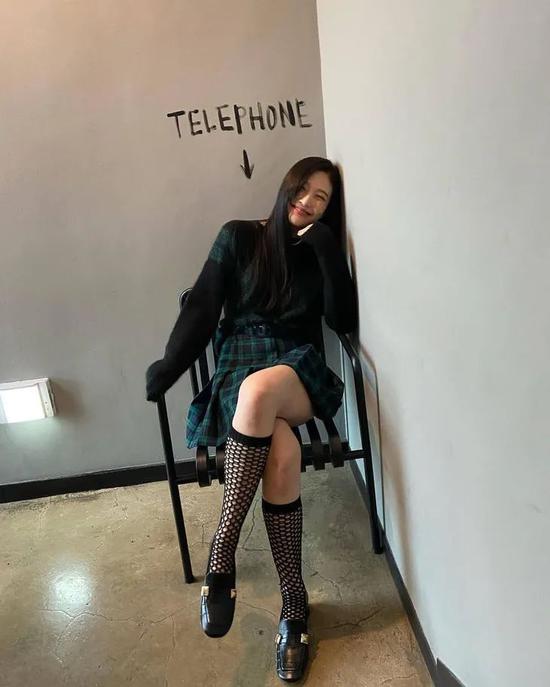 加长的毛衣下摆复古味十足,再不经意露出一点裙边,恰如其分的点缀让少女感一路飙升。