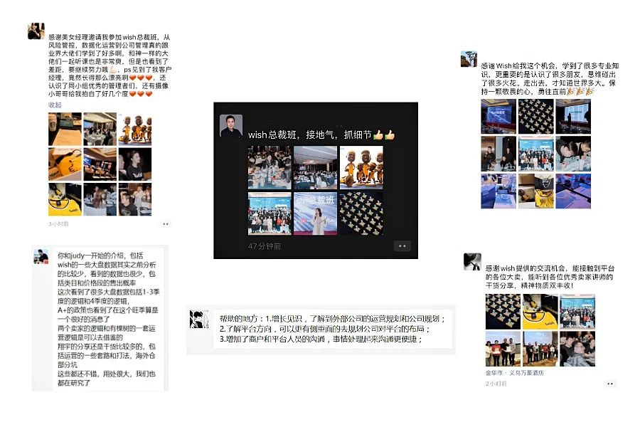 Wish总裁班作为Wish与商户的沟通桥梁,旨在帮助商户正确理解平台意图,制定符合企业长远发展的运管策略。商户能在总裁班碰撞出真知,博采众长惠及旺季,便是此次总裁班最大的收获。