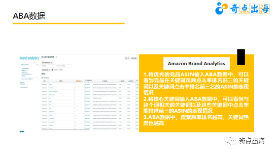 ABA(Amazon Brand Analytics)可以说是我们品牌卖家的"王炸"工具。亚马逊的数据非常封闭,我们很难像在国内某宝那样通过平台看到很多有价值的数据,但是当你拥有了品牌之后你可以直接查看到亚马逊官方的关键词搜索热度、点击率以及转化率的表现情况,对产品关键词的数据一目了然!