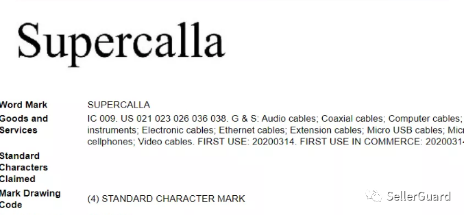 品牌商标supercalla已注册,不能使用在产品标题图片等地方: