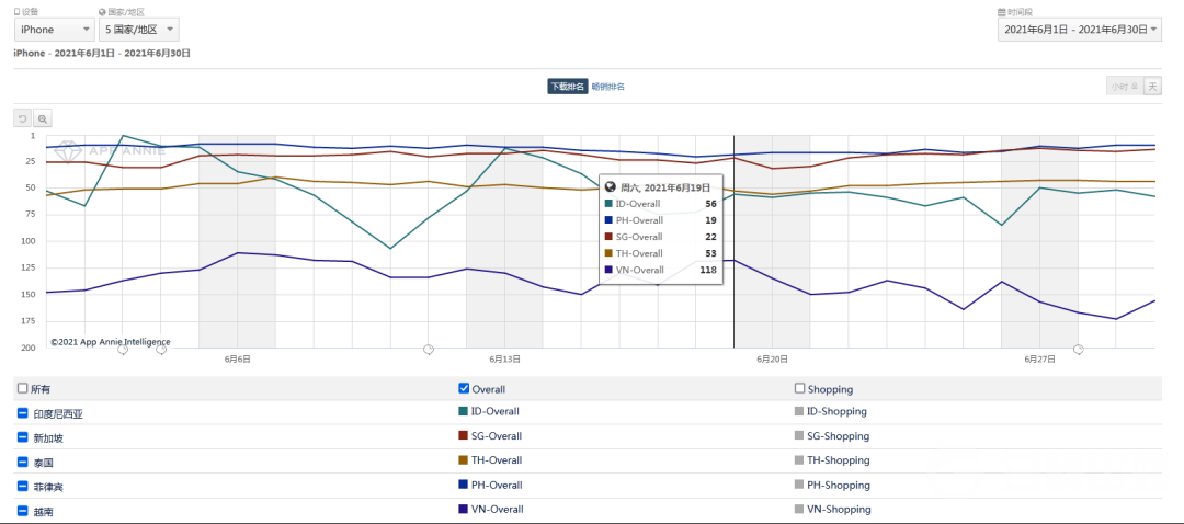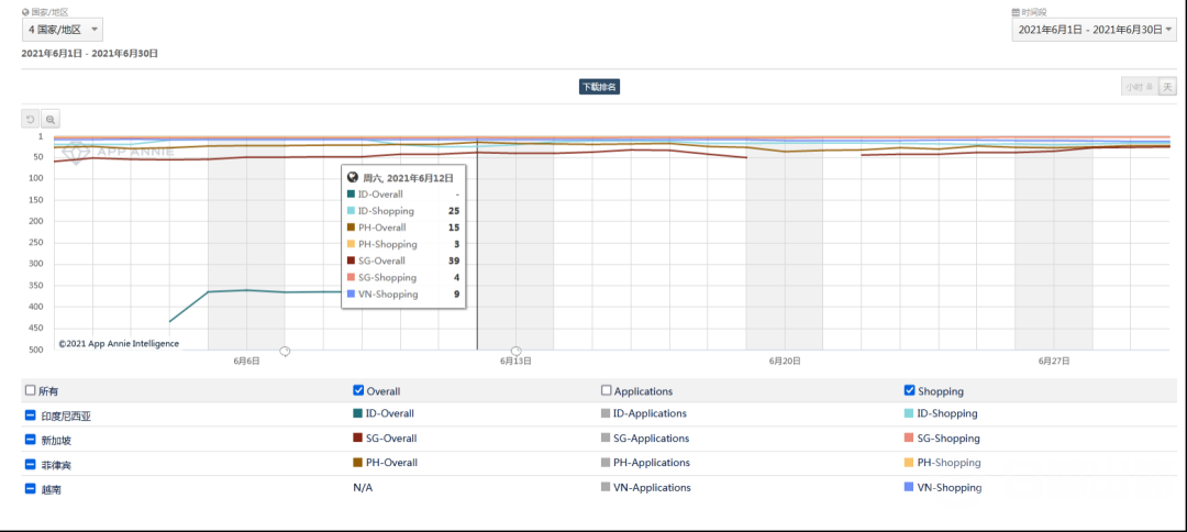 截至今天,「SHEIN」的移动 App 位列这些国家 iOS 购物类下载榜前 10,总榜前 60(越南除外)。而 App 在 Google Play 各国下载榜排名还不够好。
