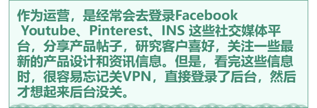 为什么登录VPN不能登录后台呢?因为我们的登录的VPN都是用的一些港澳台或者是国外的IP,同一个IP不知道有多少人用,多少人又会在同一个IP下误登后台。而IP关联属于强关联,店铺被被关联死掉的风险很大。