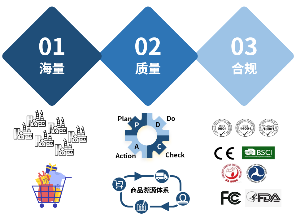 平台提供符合各目的国标准的合规商品,具有完整的资质证书,合规质优,令卖家无忧售向各个目的国家市场。