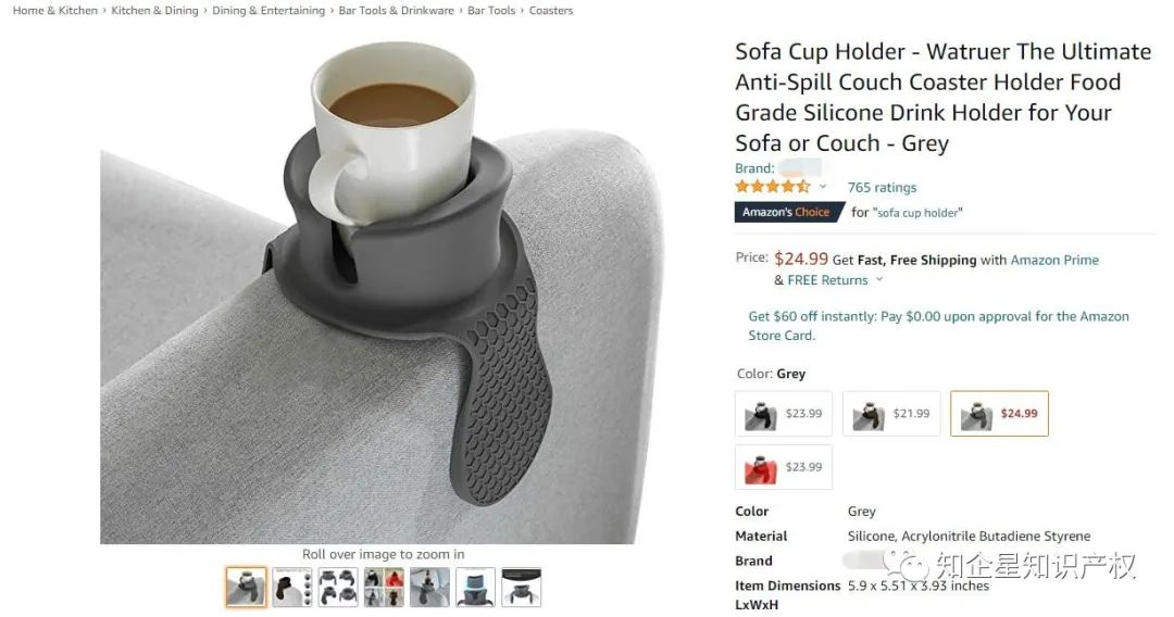 今天在浏览亚马逊的时候,看到一款沙发杯架,它是美亚站的Amazon's Choicefor sofa cup holder ,售价24.99美金,留评765颗星。
