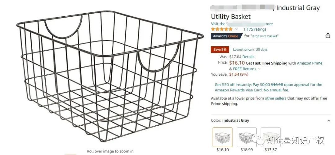 今天在浏览亚马逊的时候,看到一款金属收纳篮,它是美亚站的Amazon'sChoice,售价16.07美金,留评1177颗星。