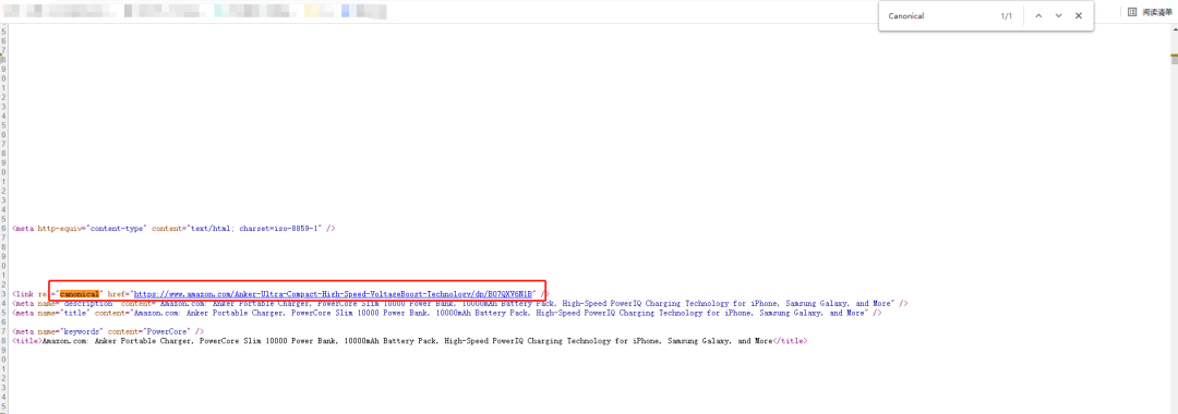 2 进入page source以后, 直接 CTR+F,然后右上角方框填入:Canonical ,然后点击搜索。