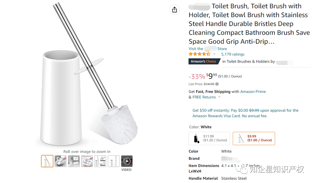今天在亚马逊看到一款马桶刷套装,它是美亚站的Amazon'sChoice,售价9.99美金,留评5283颗星。