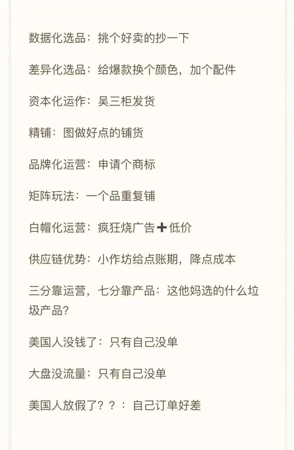 认为产品不重要,同质化严重不重要,产品退货率高不重要,listing文案埋词不重要,一味.............