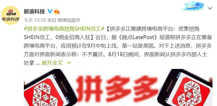 据界面新闻报道,拼多多在筹备阶段就有针对性地密集接触了SHEIN员工,多位SHEIN员工都证实接到了拼多多HR的挖角邀请,但具体情况拼多多方面仍非常保密,仅透露工作地点在广州。