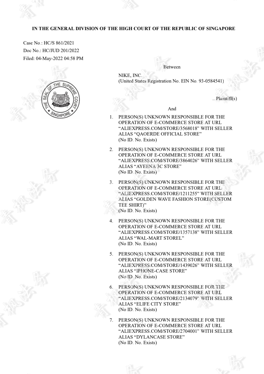 阿里系平台一直都拒绝执行美国侵权案件的判决。所以这些年,被"流氓律所"起诉的店铺资金都只是冻结一笔,后续店铺依旧可以正常运营和提款,并没有因为美国侵权的案件的判决,而被原告划走店铺冻结的资金。理论上,每个国家都有自己的司法主权,一个国家的判决,要去另外一个国家执行,必须得当地法院的承认。但是今天,这个情况将发生彻底改变!同属英美法系(海洋法系)的新加坡,认可了这次判决。在今年5月,新加坡最高法院下发判决,承认与执行GBC在美国伊利诺伊州北区法院代理诉讼的NIKE案件(20-cv-7138)的缺席判决。该新加坡法院判决已经生效,法院下令该案件的每个被告卖家应向原告支付50w美金的赔偿金,以及按5.33%的年利率支付从2022年5月4日起到赔偿金实际支付之日止的利息,其次还有本次相关诉讼律师费用32803.8美金。目前,已有该案被告卖家的速卖通店铺资金被平台进行划扣。同时在邮件中Alipay明确回复了如果判决金不支付的话,将会强制执行新加坡法院的命令,包括但不限于将被告在支付宝国际账户的资金强制转移。