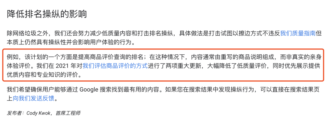 这次的更新,我从技术角度看其实一直没找出太多外在的因素。于是我就开始把Google的站长更新内容重新搬出来看,突然就恍然大悟了。