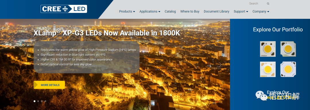 科锐是美国的一家上市公司,成立于1987年,是为全球LED外延、芯片、封装、LED照明解决方案、化合物半导体材料、功率器件和射频于一体的制造商。科锐LED照明产品的优势体现在氮化镓(GaN)和碳化硅(SiC)等方面独一无二的材料技术与先进的白光技术,拥有1,300多项美国专利、2,900多项国际专利和389项中国专利(以上包括已授权和在审专利)。