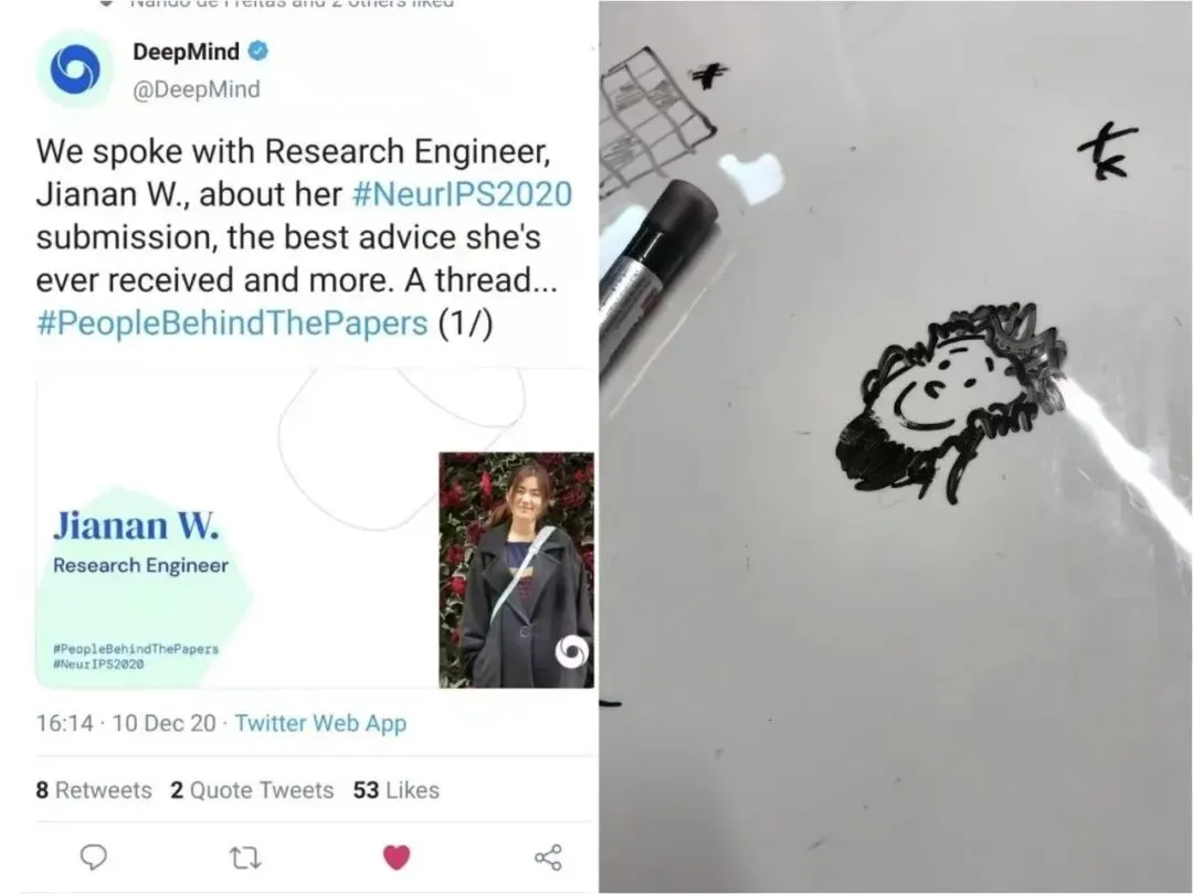 王佳楠在 DeepMind 期间的工作和办公室的随手涂鸦