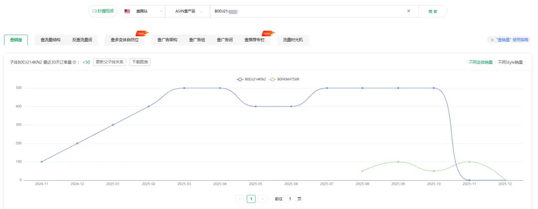 截图:sif关键词但随着同类竞品涌入,其流量结构从 2025 年 10 月开始松动:SP 广告流量占比从 77% 逐步下滑,自然流量占比仅 0.37%,到 11 月专利投诉发起时,子体近 30 天订单量已跌破 50(数据来自sif工具)。品牌方本想通过投诉清理竞品、夺回市场,却未达预期 —— 从流量数据的后续走势看,投诉后其整体销量并未回升,反而因竞品分流与自身权重波动,彻底陷入销售低谷。